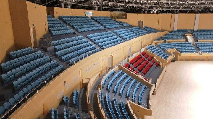 杭州电子科技大学体育馆原有两套电子显示屏设备和5000多个座椅,经过评估,这些设施还可以使用。于是,在亚运会击剑比赛馆场地改造完后,这些已经“16岁”的座椅被安装回原有位置。