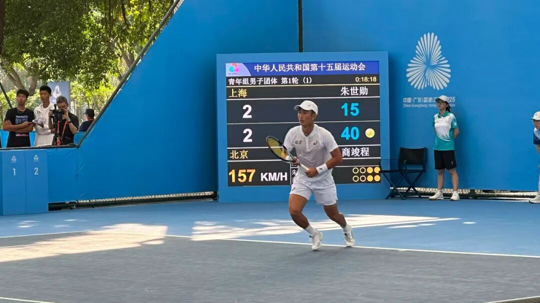 在全运会网球比赛的第一天,北京队的商竣程无疑成为了瞩目的焦点,他的登场吸引了横琴国际网球中心众多球迷的目光。