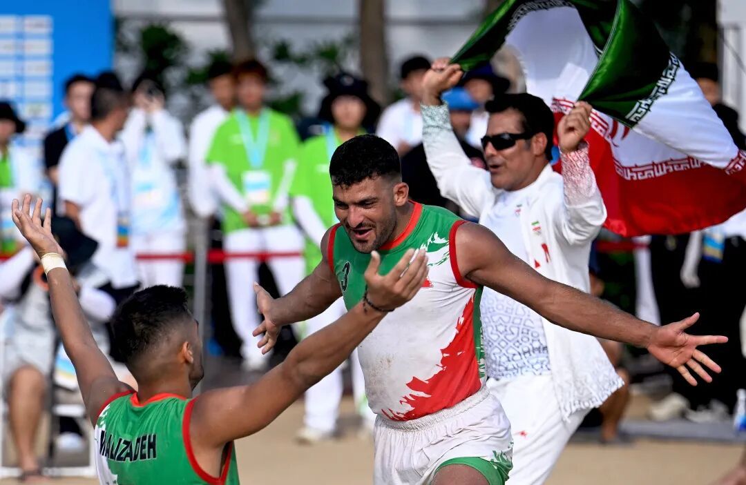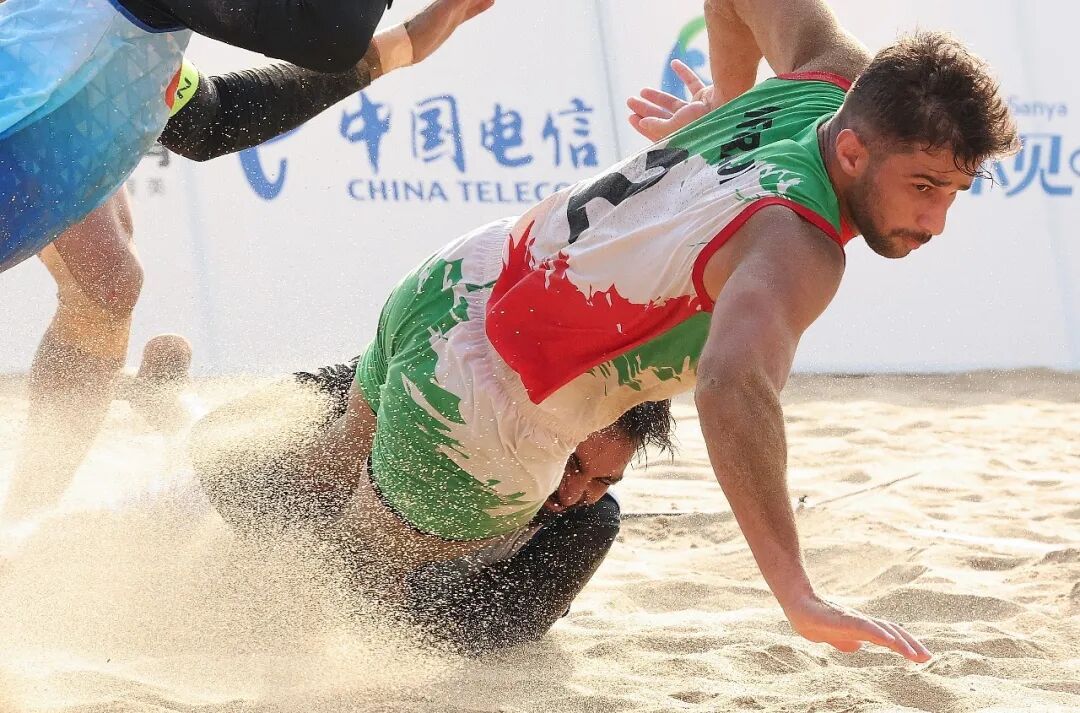 4月27日,在海南三亚举行的第六届亚洲沙滩运动会沙滩卡巴迪男子决赛中,伊朗队44比31战胜印度队,获得冠军。