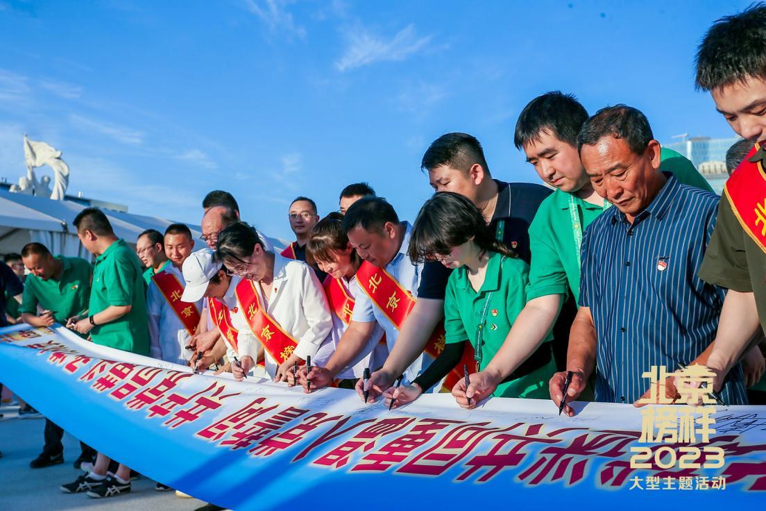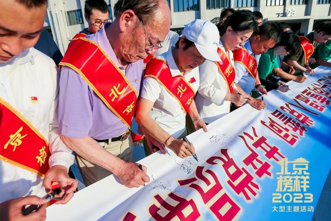 随后,榜样和球迷代表带头承诺将文明观赛,保障现场秩序。与此同时,大家一同在横幅上郑重签名,承诺将“文明观赛”落到实处,为首都精神文明建设贡献力量。
