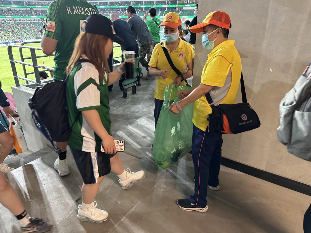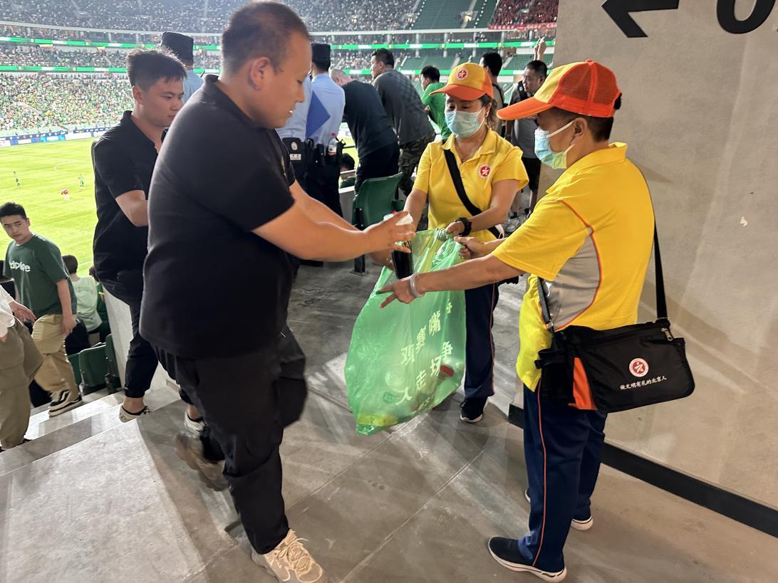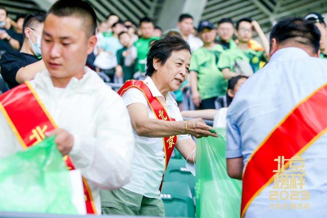比赛结束后,北京榜样优秀党员代表们主动捡拾看台垃圾,清理现场卫生,保证赛场的整洁有序。在观众离席时,榜样们也在各个观赛台站台、通道等处引导观众有序离场,充分展现了北京榜样的引领示范作用。