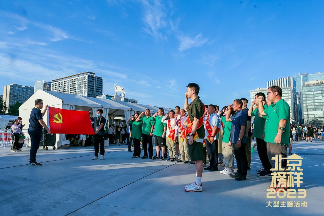 全体榜样和球迷代表在2016北京榜样张博研的带领下,面对鲜红的党旗,肃穆而立,高举右拳,齐声庄严宣誓:“我志愿加入中国共产党,拥护党的纲领…”党旗下的誓言,字字铿锵,句句神圣,响彻了赛场上空,立下了对党最忠诚的誓言,表现出对党的赤胆忠心。
