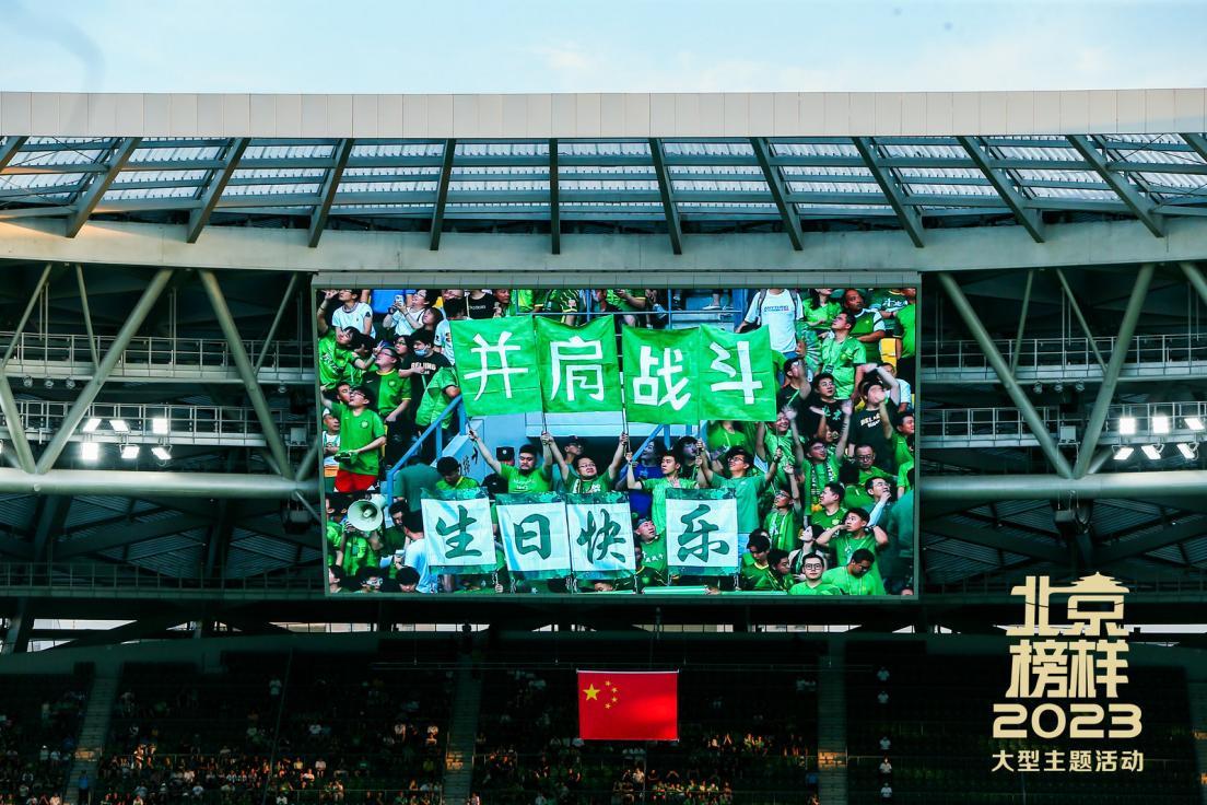 为深入贯彻党的二十大精神,以榜样之姿弘扬引领伟大建党精神,北京工体公益看台特邀东城、西城、朝阳、海淀等8个区的“北京榜样”优秀党员代表前来观赛。赛前,为喜迎党的102岁华诞,北京心力量球迷组织代表与北京榜样优秀党员代表们共温入党誓词,这也是新工体自建成以来首次进行宣誓活动。