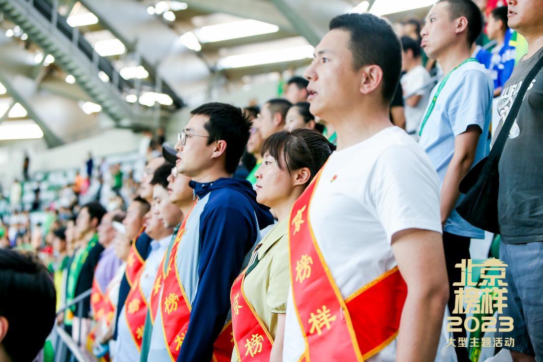 为深入贯彻党的二十大精神,以榜样之姿弘扬引领伟大建党精神,北京工体公益看台特邀东城、西城、朝阳、海淀等8个区的“北京榜样”优秀党员代表前来观赛。