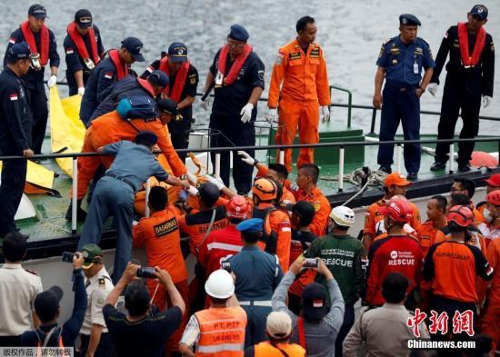 资料图:2018年10月29日印尼狮航客机坠海,搜救人员寻获机上用品。