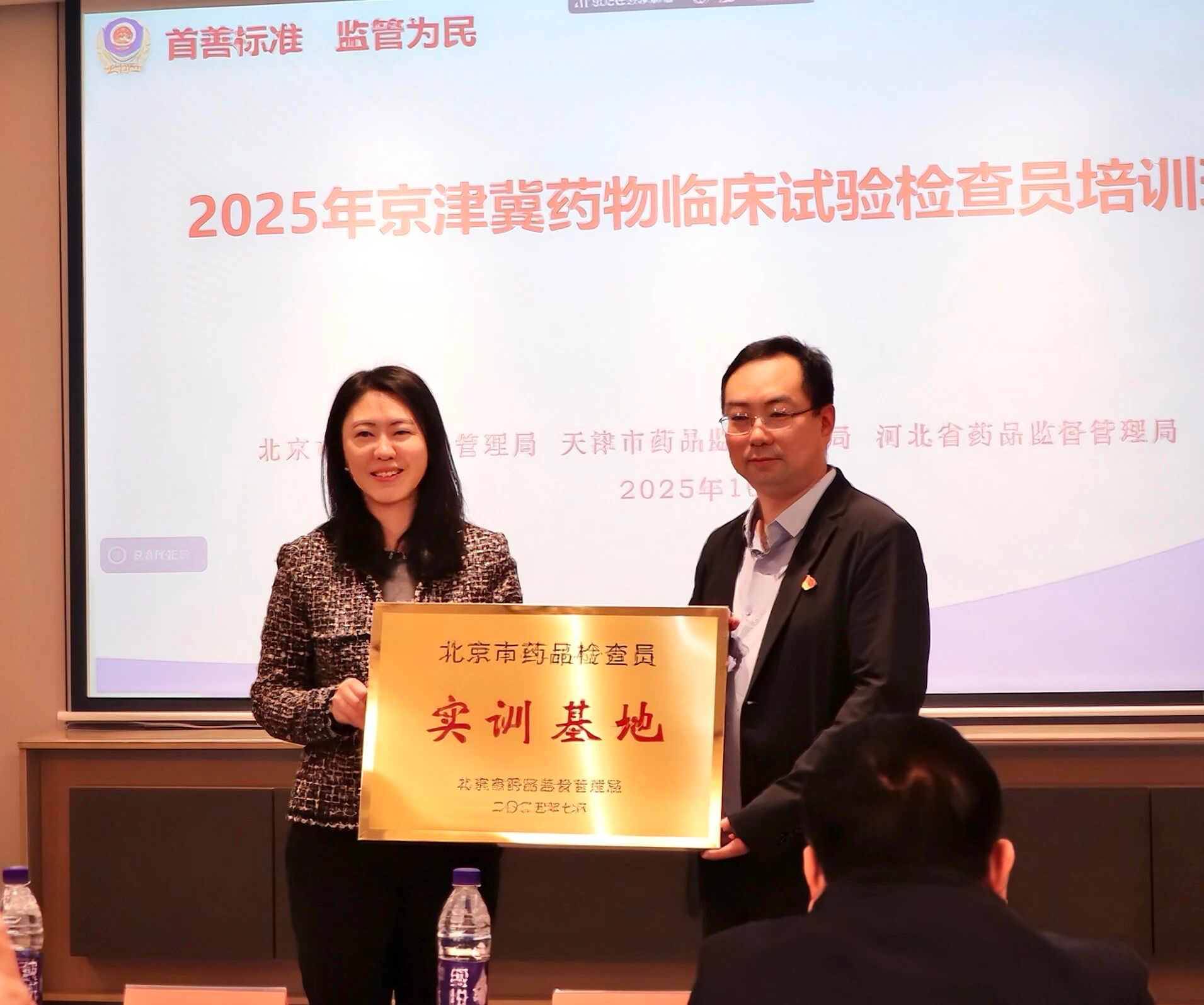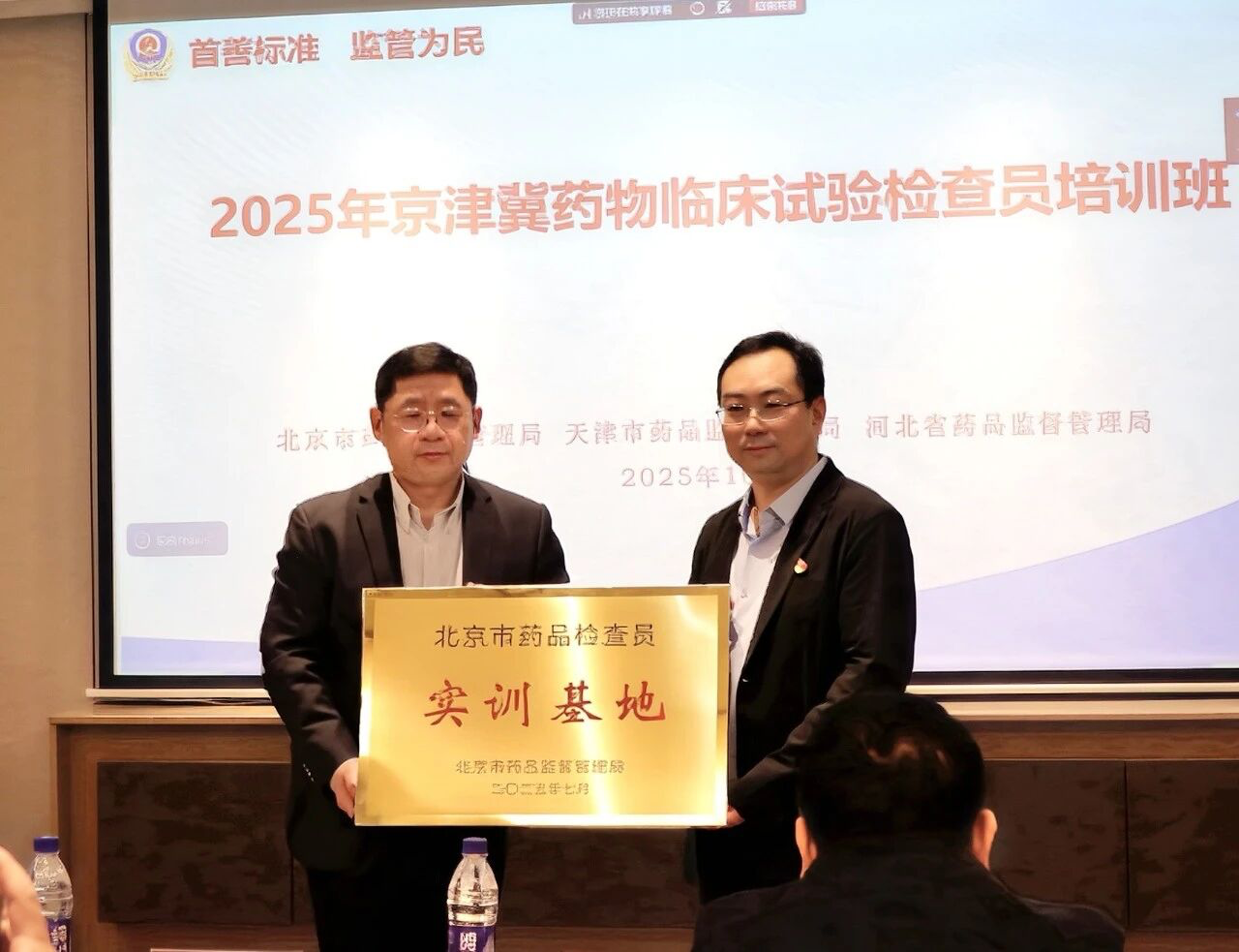 (1)近日,2025年京津冀药物临床试验检查员培训班暨实训基地授牌仪式在京举办,市药监局分管局领导作培训动员讲话,国家药监局药品注册管理司药物研究处负责人时乐到场指导。