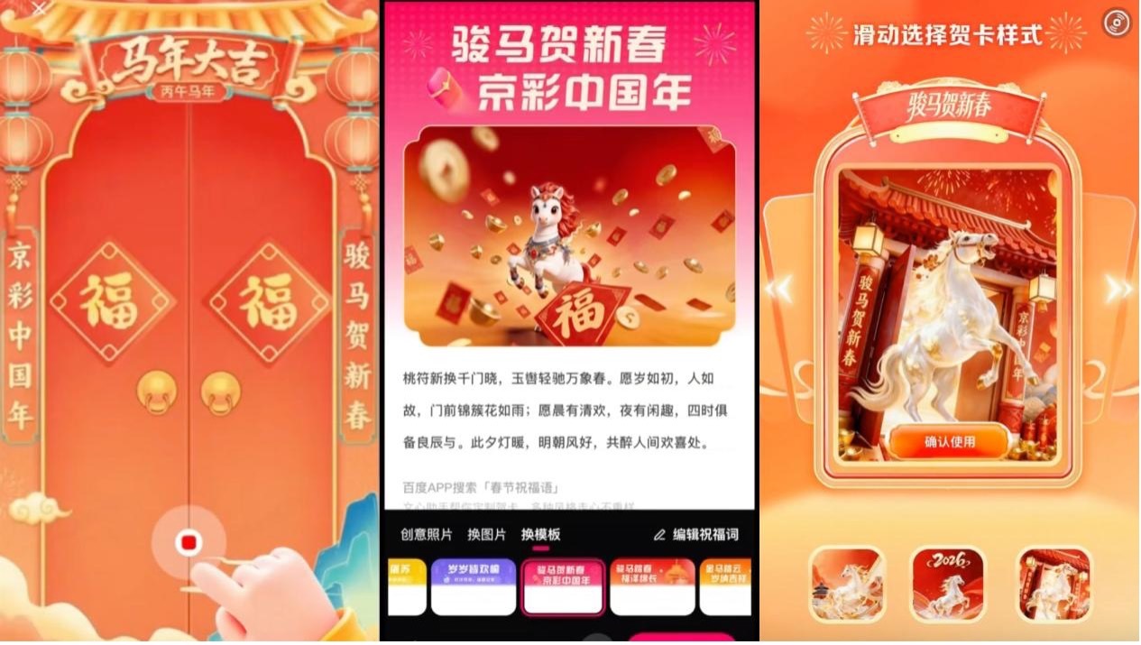 北京市委网信办正式集结北京时间、凤凰网、京报网、抖音、快手、百度、腾讯、网易、微博、搜狐十大主流平台,重磅推出2026“京彩中国年”AI电子贺卡系列活动,以科技焕新传统年俗,让京城地标点亮新春氛围,一场别具一格的马年新春盛宴正式开启!