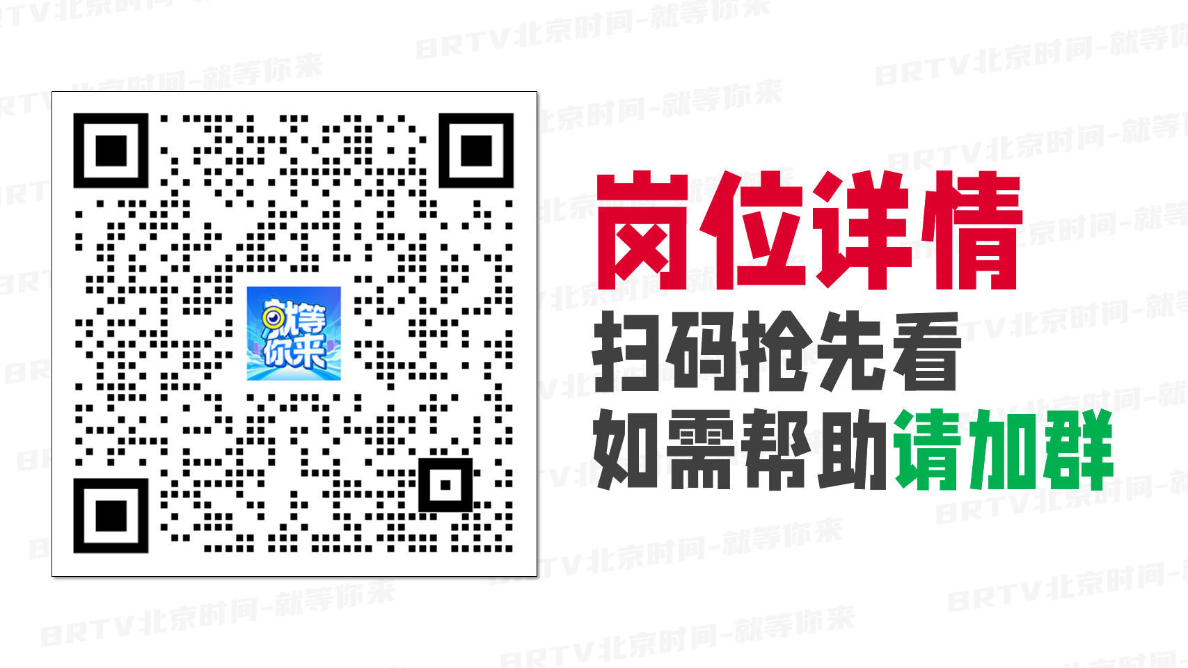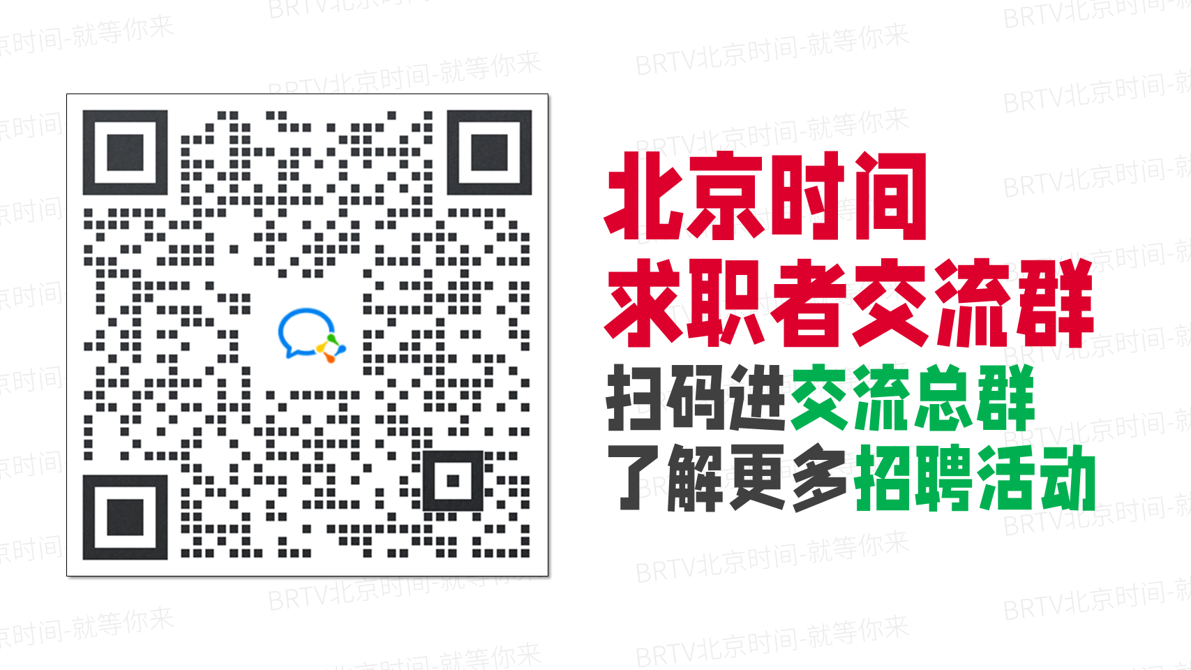 北京时间是北京广播电视台官方App,管理员只会在群内分享官方组织的招聘活动信息。如果有人私加您微信、或分享“兼职副业” “领红包”等消息,请勿相信,以防被骗。