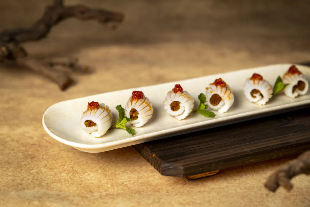 黄鳍金枪鱼开鱼、小米辽参、战斧牛排