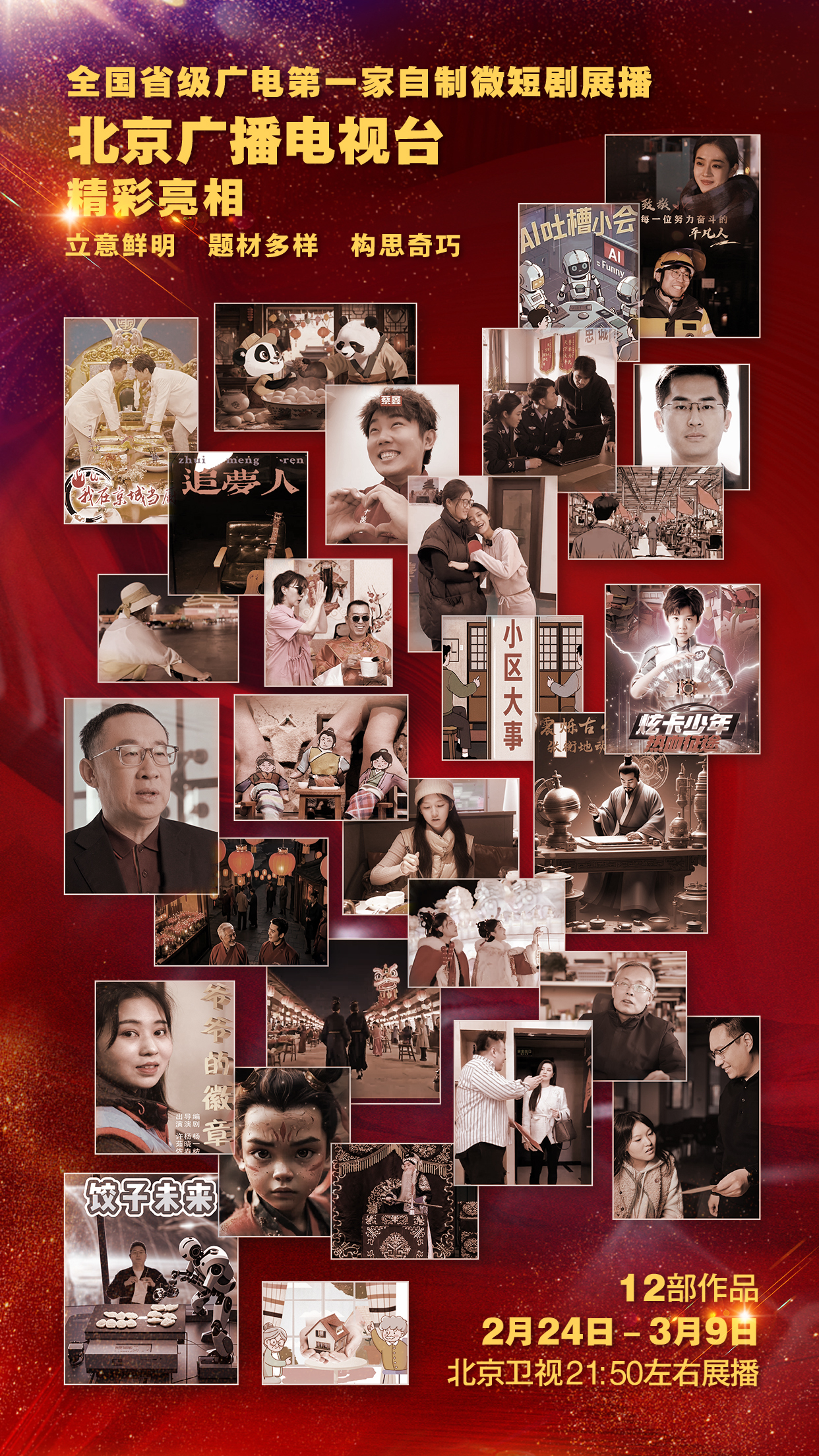全国省级广电首家自制微短剧展播!2.24-3.9每晚21:50,12部创意短剧连发!你准备蹲哪部?速速定好闹钟,北京卫视、北京时间见!
