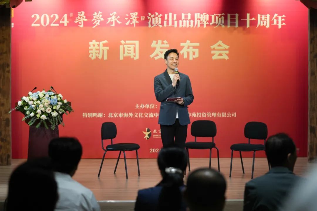 5月15日,北京京剧院“寻梦·承泽”十周年新闻发布会在北京市海外文化交流中心隆重举行。中华全国新闻工作者协会原党组书记翟惠生,北京市政协原副秘书长宗朋,北京京剧院院长秦艳,北京市海外文化交流中心副主任王海茹,海淀区文联秘书长、办公室主任崔靖,北京市政协委员、北京桓丰苑投资管理有限公司董事长耿晓冬,北京市政协委员、北京凌盛投资控股集团有限公司董事长于立荣,北京市政协委员、中国职工文化体育协会副会长、微电影短视频分会会长李迅,著名书法家、北京市政协委员、北京宏宝堂文化有限公司董事长程茂全,北京京剧院副院长朱甲、孙鹏、迟小秋,长安府别墅项目总经理祁珂微,北京广播电视台文艺频道高级编辑赵楠,“寻梦·承泽”项目负责人、北京京剧院领衔主演、老生名家杜镇杰,北京京剧院领衔主演、梅派青衣名家张慧芳,以及剧院相关业务部门主要负责人、长期支持“寻梦·承泽”的戏迷观众等到场参加。新闻发布会由北京广播电视台主持人关文平主持。此次发布会由北京广播电视台北京时间网站、北京京剧院官方抖音、B站、视频号及杜镇杰个人抖音进行了同步直播,总触达人次达17万。
