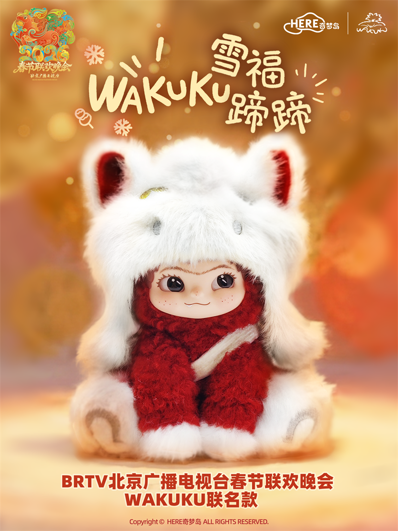 WAKUKU作为近年来备受瞩目的国产原创潮玩IP,以其独特的形象持续收获着年轻群体的喜爱。此次2026年北京台春晚携手WAKUKU,推出新春联名款“雪福蹄蹄”,以“马上好运”为灵感,巧妙融合吉祥寓意与潮流审美,打造属于Z世代的新春“社交货币”。