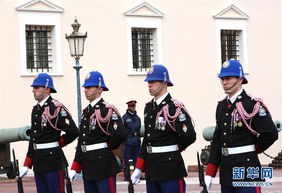 这是2019年3月15日在摩纳哥王宫前拍摄的站岗的士兵。