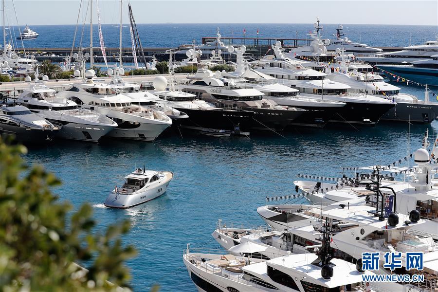 这是2018年9月27日在摩纳哥拉孔塔米讷拍摄的参展游艇。
