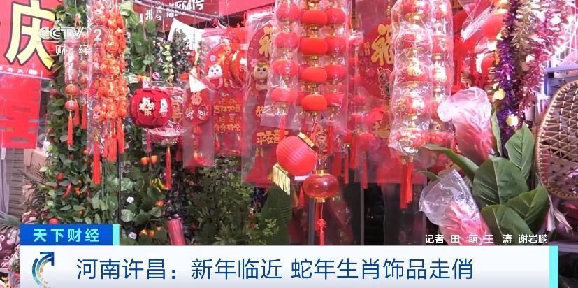 在河南许昌市区一商业街,各个饰品销售门店内已经是红彤彤一片,挂满了喜庆的红灯笼、各式蛇年卡通挂件、对联等商品。为了满足消费者的购物需求,商家们都提前备足了货源。