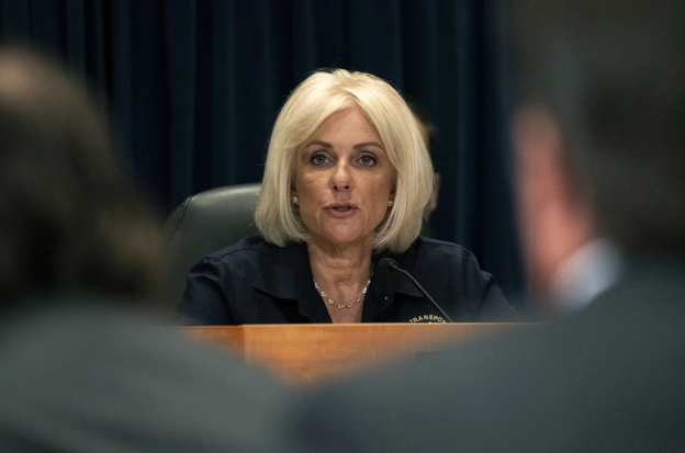 △美国国家运输安全委员会主席詹妮弗·霍门迪在听证会上发言。