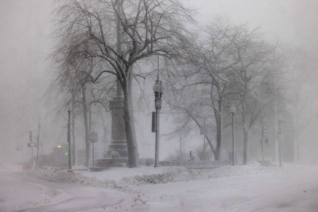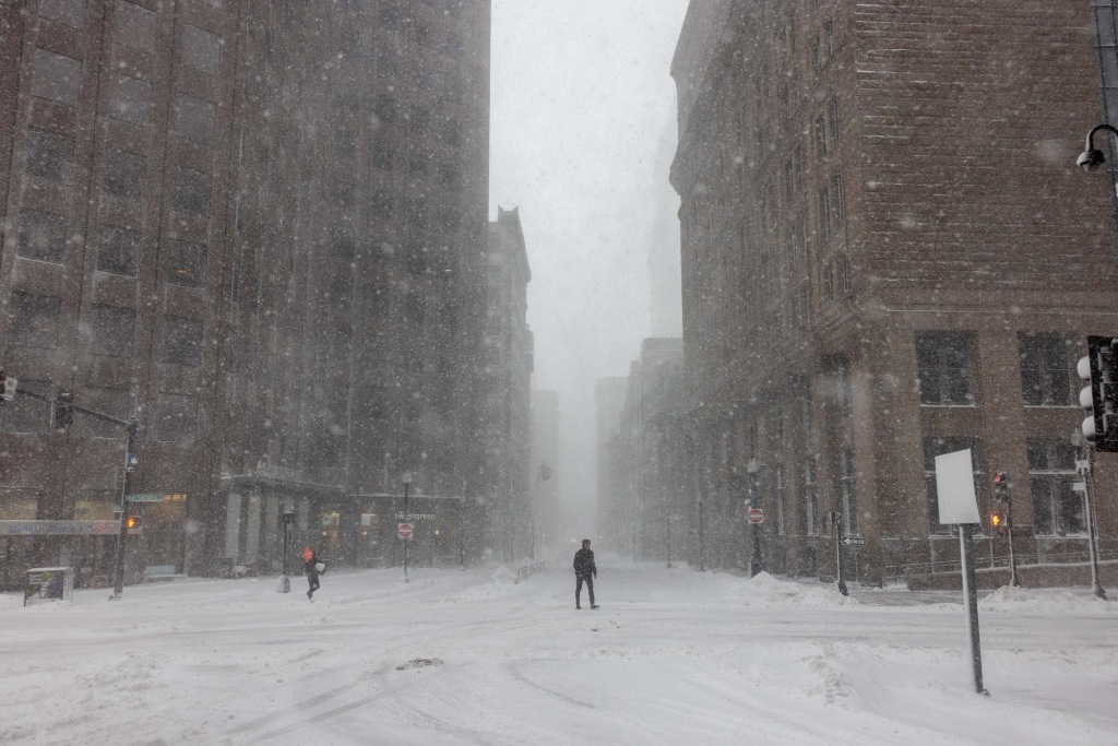 2月23日,美国马萨诸塞州波士顿,邮政广场出现暴风雪天气。视觉中国 图