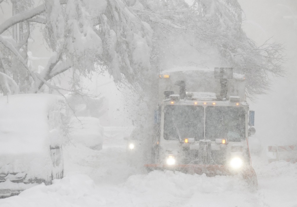 2月23日,工作人员在美国纽约的道路上除雪。新华社 图