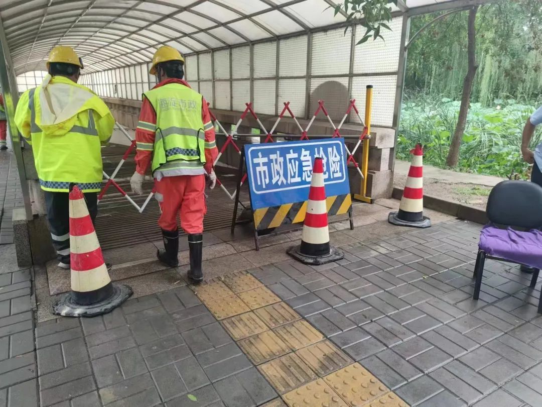 市政三处备勤20人(金沟河、林大北路各10人),抢险车辆及机械设备24台套,防汛重点点位出动现场值守16人。公联公司备勤 60人,在全区每座地下通道安排至少2人现场备勤,与地铁接驳的至少4人现场备勤,站西路驻地和沙窝桥驻地各安排10人驻地备勤。时代公司备勤220人(定慧桥、清河各110人),抢险车辆及大型抢险机械22台,其中抢险车辆14辆,装载机8辆、挖掘机5台、液压工作站8台、小型机械12台套、发电机4台、水泵10台、抽排设备虹吸水式抽排车1辆,安排巡查人员8个车组16名巡查员 对潜山道路、下凹道路、掘路路段和易积水道路进行道路巡查工作,早8时至10点30分,共计巡查道路221条未发现道路塌陷等紧急事件。