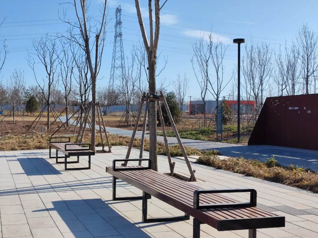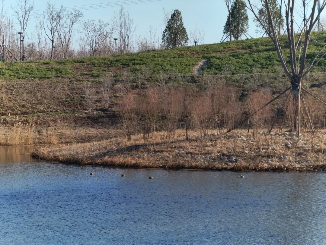 公园在现状生态本底上,培育出湿地、彩林、草地、灌丛和农田等多类鸟栖息环境,形成五大观鸟场景。通过大规模植被建设,共新增乔木、亚乔逾3400株,灌木地被20余万平方米,引入了众多如元宝枫、海棠等食源植物,不仅丰富了景观层次,更为鸟类等生物营造了宝贵的栖息环境。同时配套建设了生命塔、观鸟墙、观鸟营帐、鸟咖啡等设施,并改造原十三排干为景观水系,沿水系设置亲水平台、观景廊架等打卡节点,全面提升生态与景观品质。