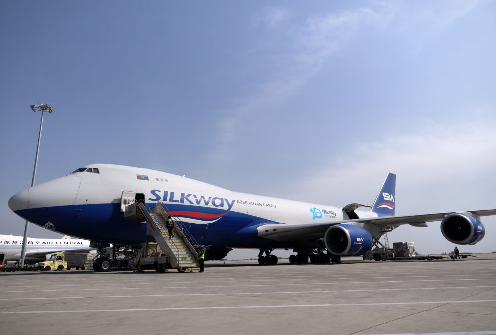 2025年4月2日,一架阿塞拜疆丝绸之路西部航空公司的货机停靠在郑州新郑国际机场停机坪上。