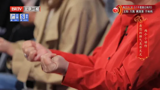 ◎握拳呼吸测试:把大拇指握在四指里面(相当于攥住了肺经),然后使劲握拳,同时正常说话。如果说话明显气喘、憋得慌,说明肺气偏弱。