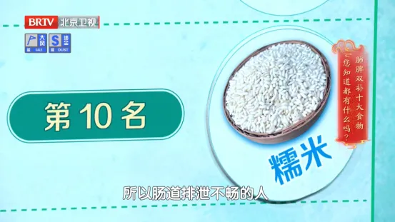 第10名:糯米。糯米是健脾养胃的好手,但由于有点滋腻碍胃,肠道排泄不畅的人不适合。