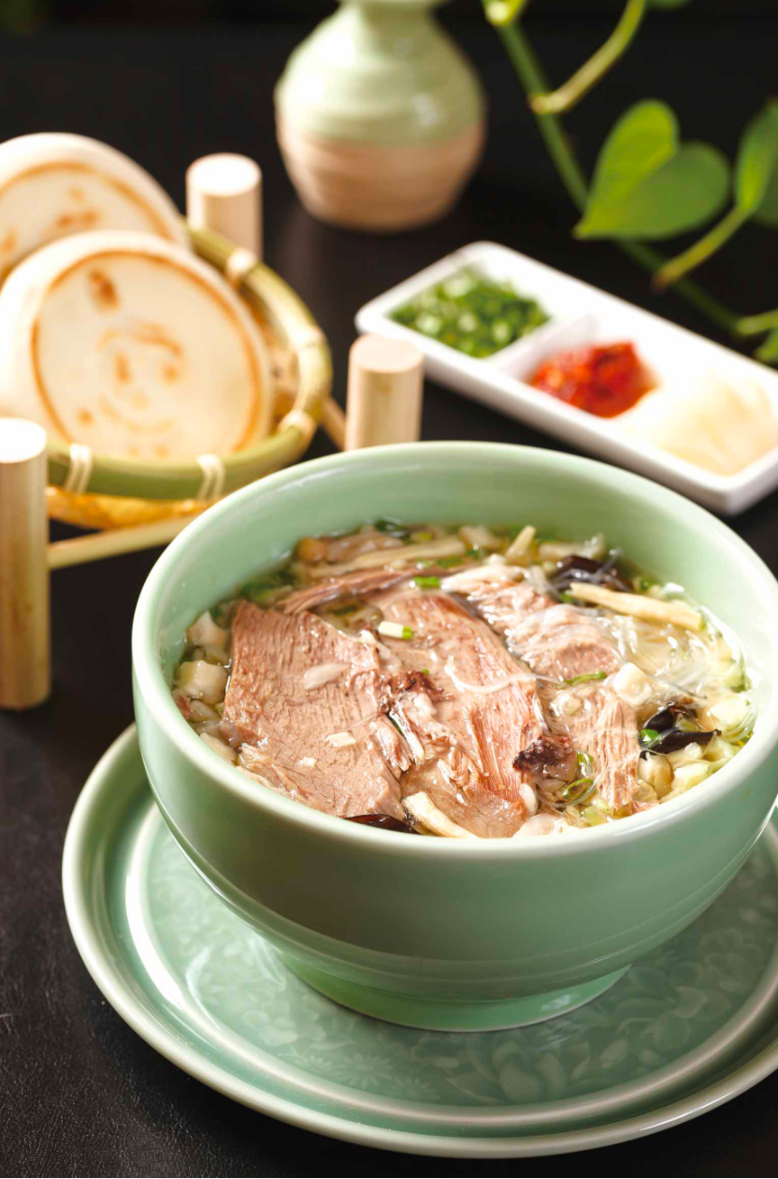 羊肉泡馍起源于西周时期的“羊肉羹”,由羊肉、饪饪馍、肉汤等按一定比例搭配,经过严格工序煮制而成,是长安人最喜爱的餐食之一。它口感细膩、肉烂汤浓、营养丰富,有暖胃、补气之功能。宋代苏轼有“秦烹惟羊羹”的诗句。
