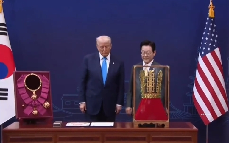 综合韩联社、《朝鲜日报》、SBS电视台等韩媒报道,韩国总统李在明29日向来访的美国总统特朗普赠送了一顶以新罗王陵“天马冢金冠”为原型的镀金王冠模型。这份礼物出自庆州民俗工艺村“三星坊”作坊的金属工艺匠人金镇培之手,纯手工制作花了20天。