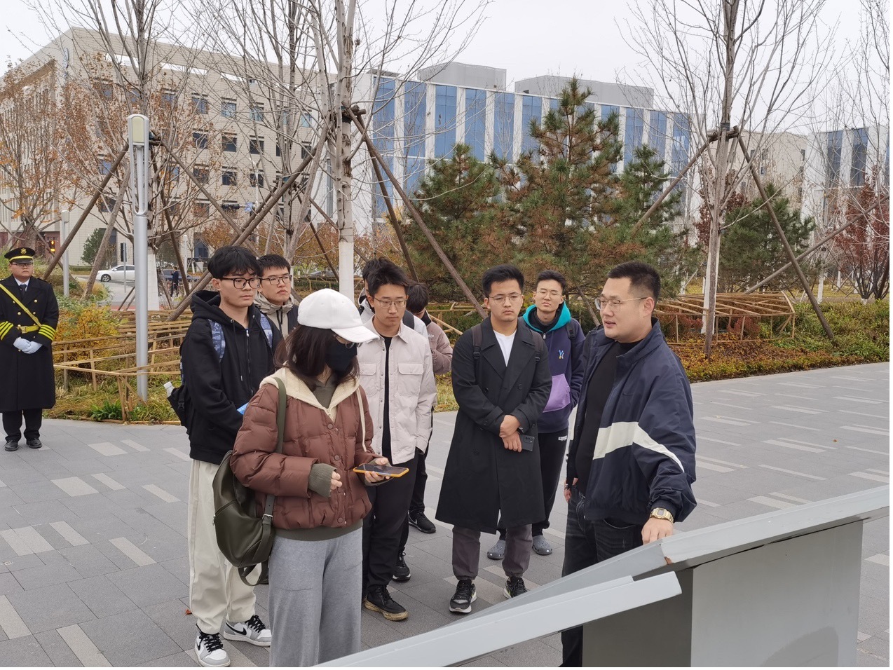 实践的最后一站,同学们参访了科学城城市客厅A地块。这个以环形公园为中心的项目,布局了研究型学院、科研办公楼、五星级酒店等,建成后将成为国际顶尖科研机构、团队的高品质、国际化配套服务中心,完善起步区的“城市生活”及科学社区功能。在城市客厅的报告厅内,同学们观看了怀柔城区的宣传片,宣传片中现代化建筑与繁忙科研场景与怀柔区的自然风光交相辉映,让同学们深刻感受到科技发展与自然生态和谐共生的理念,也给同学们以后从事科技金融,绿色金融等相关工作提供了一个意义非凡的蓝本。