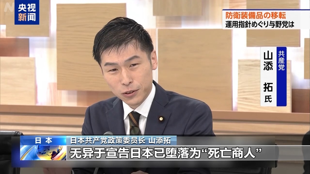 日本共产党政策委员长山添拓说,高市政府为武器出口“松绑”,无异于宣告日本已堕落为“死亡商人”。日本不能成为武器供给源,更不能以武器交易牟利,应当回归和平国家。