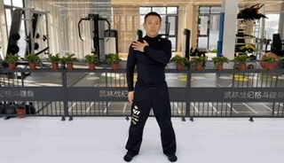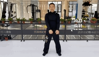 动作要领→身体向两侧慢慢90°旋转,双臂在身体两侧拍打;