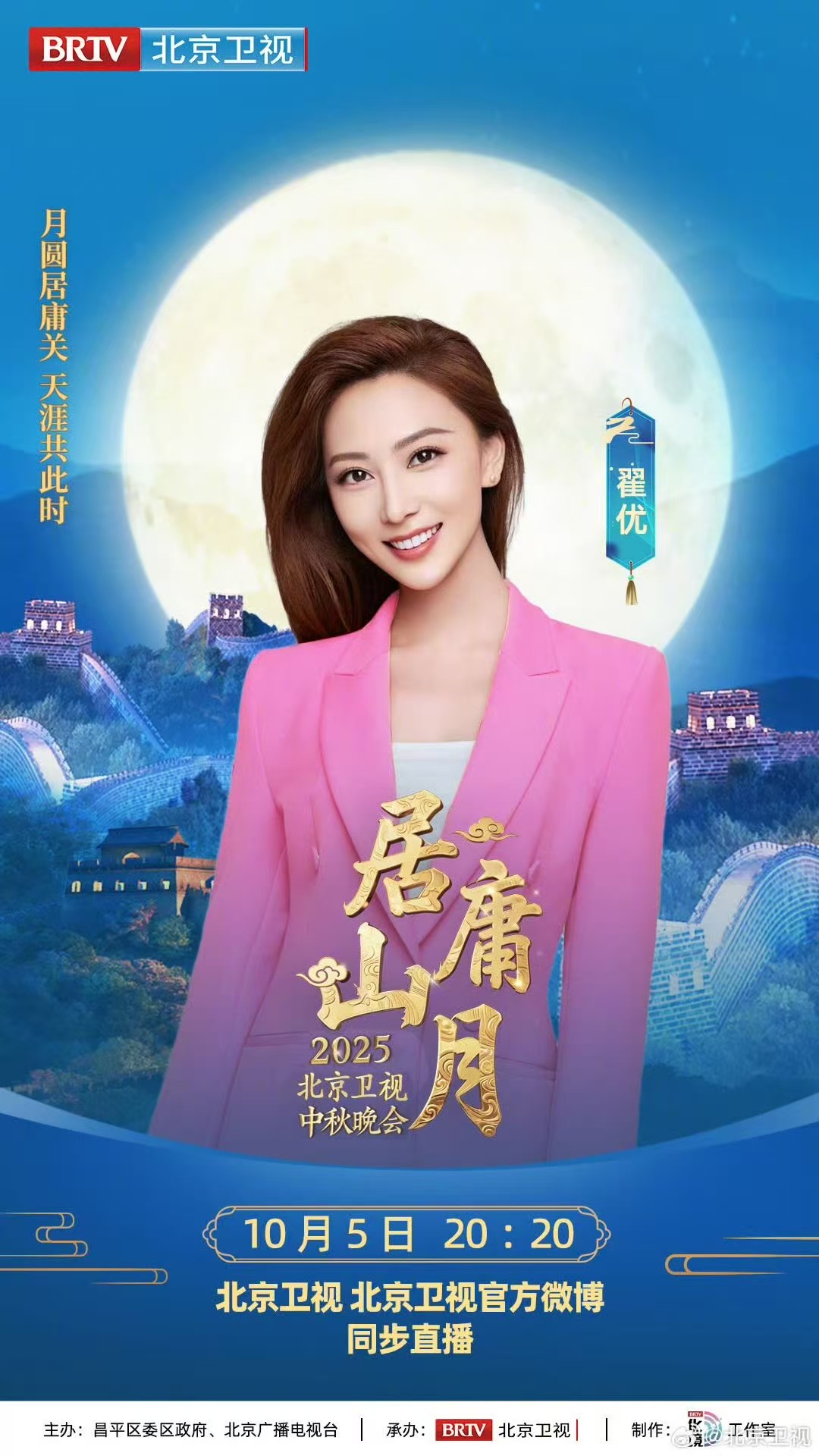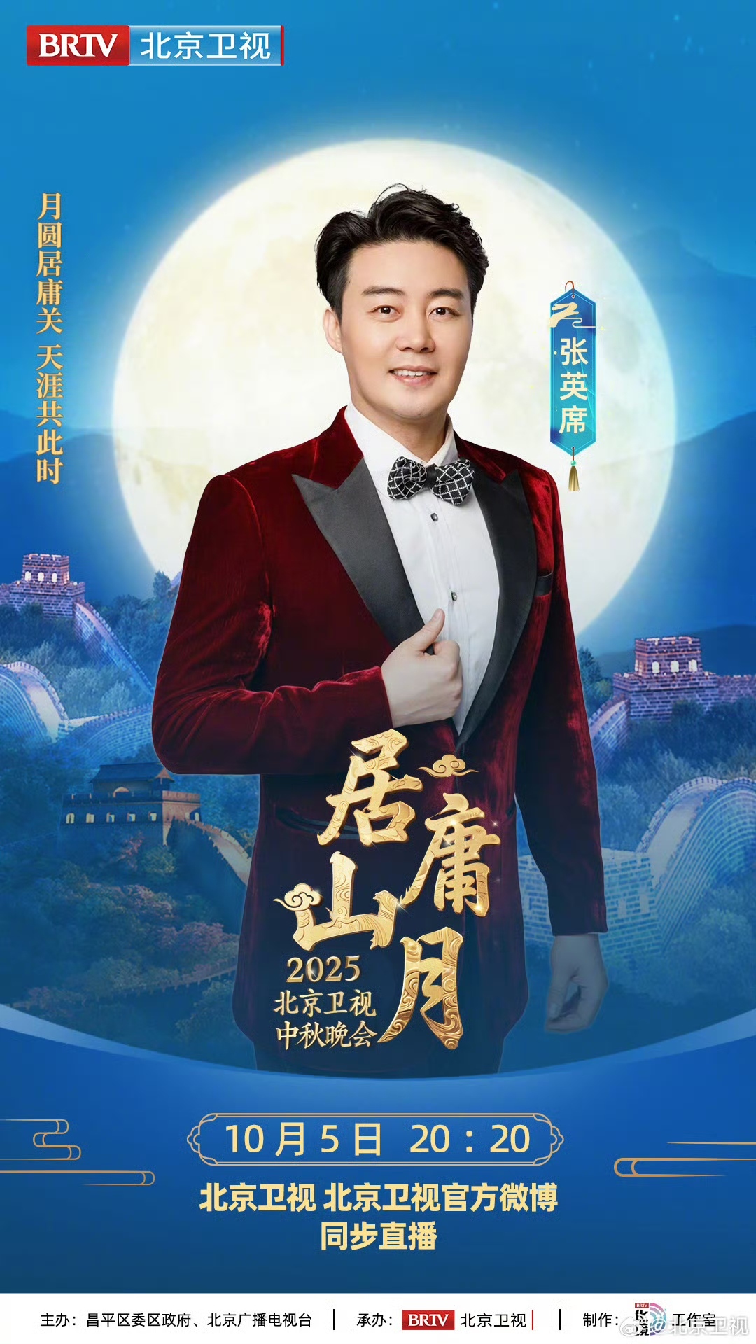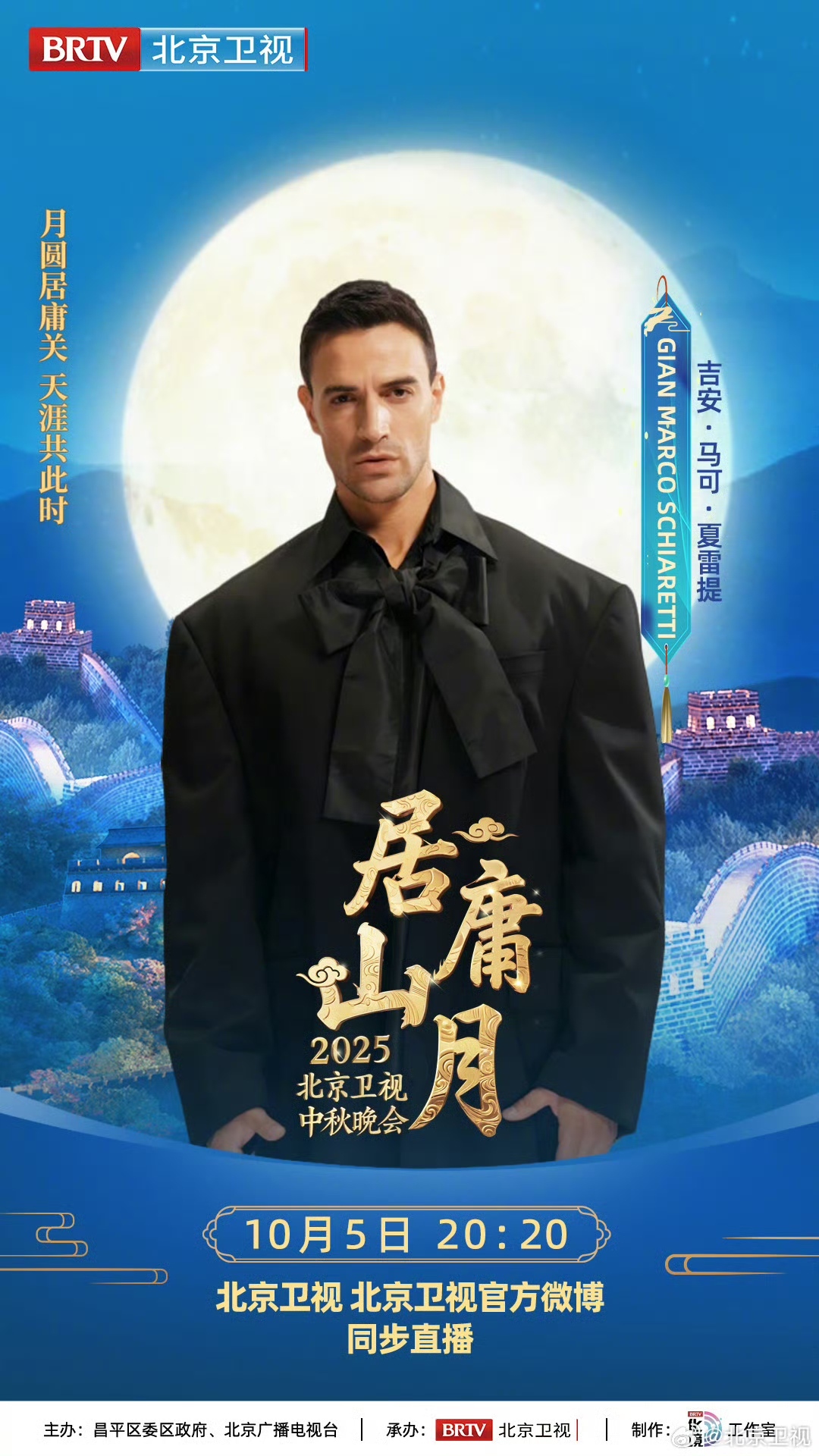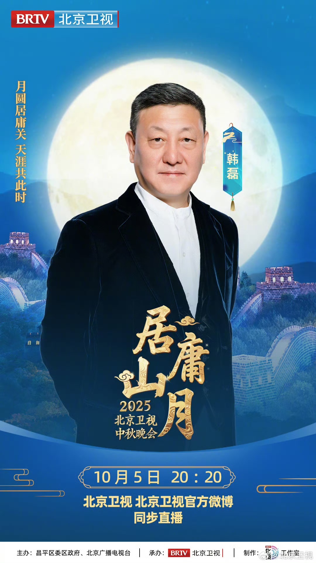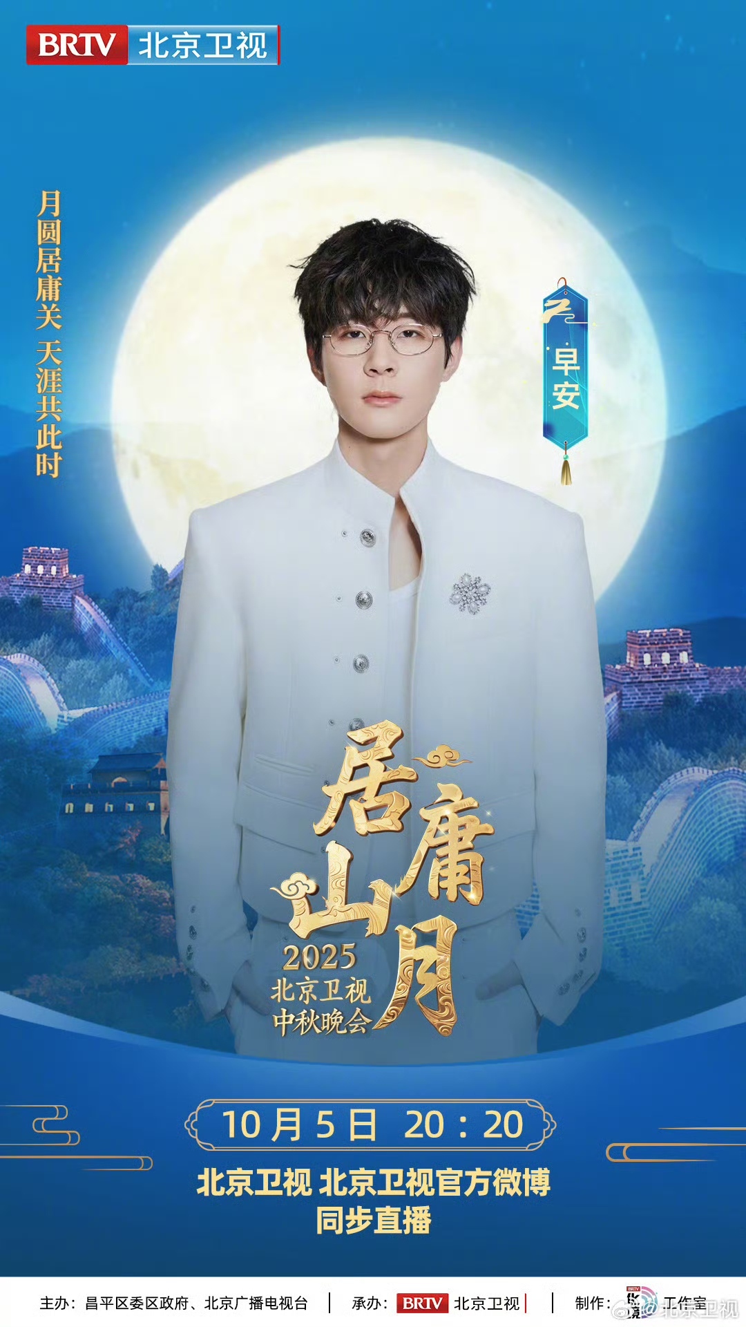 月满居庸,声动山河,全阵容揭晓!众星将齐聚长城之巅,以明月为请柬,以长城为舞台,在历史与当代的交汇处,为您串联起一场穿越时空的月光盛宴。10月5日,锁定北京卫视,共赏北京卫视中秋晚会!
