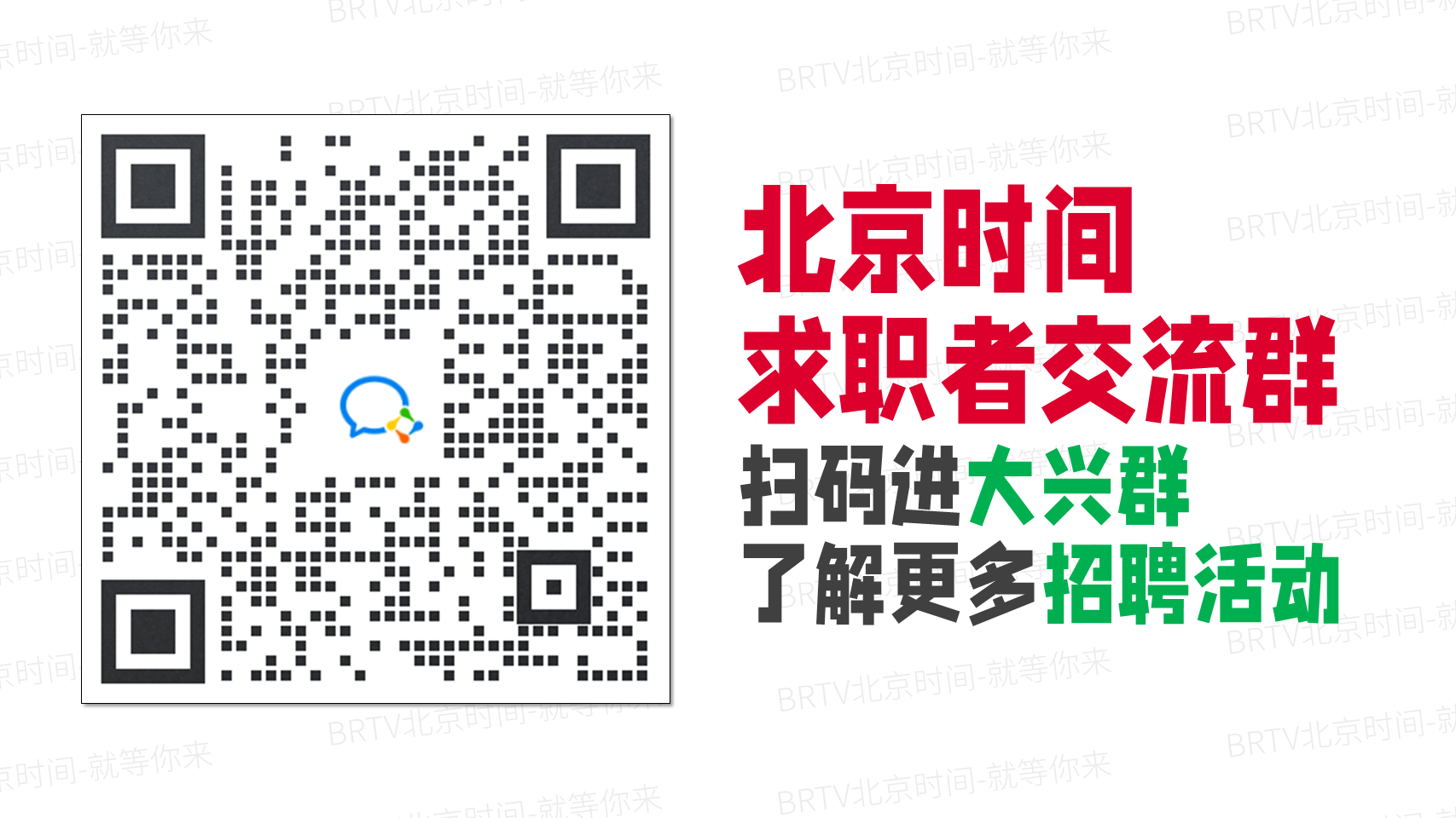 北京时间是北京广播电视台官方App,管理员只会在群内分享官方组织的招聘活动信息。如果有人私加您微信、或分享“兼职副业” “领红包”等消息,请勿相信,以防被骗。