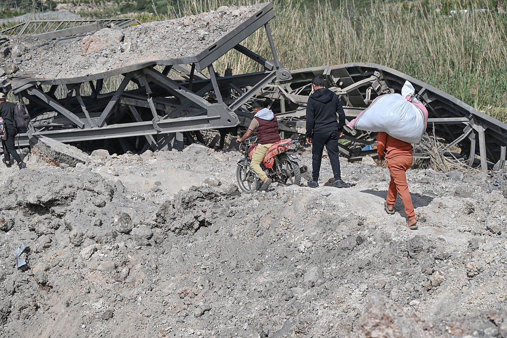 △当地时间4月16日,以色列空袭黎巴嫩一桥梁后的废墟