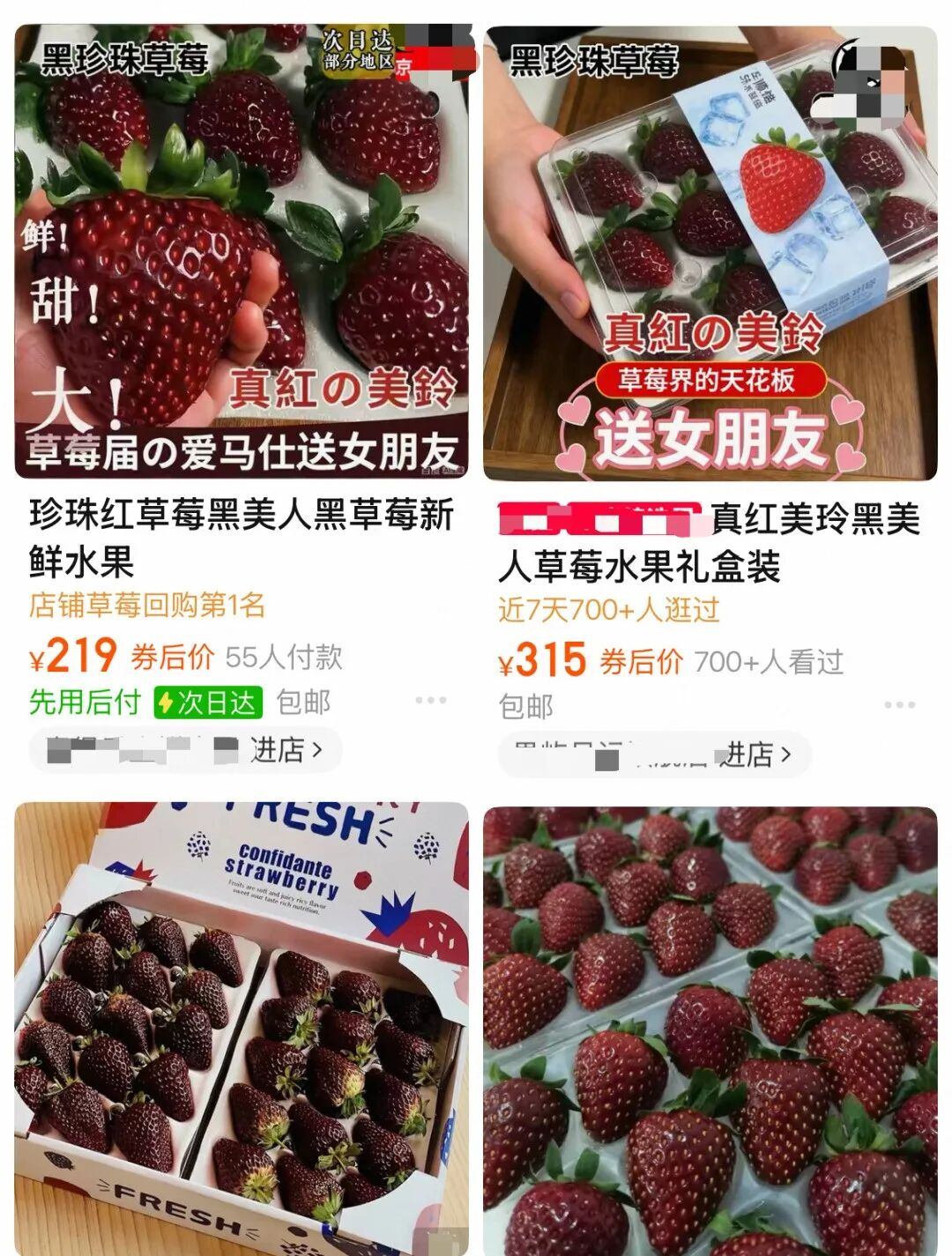 值得注意的是,尽管价格高,部分渠道已尝试引入。盒马今年在上海等区域上架了黑珍珠草莓,300克售价59.9元。据采购人员透露,黑草莓目前市场价格参差不齐,波动较大。该产品自上架以来价格已多次调整,近期降至近60天最低,月下单人数超过1万。