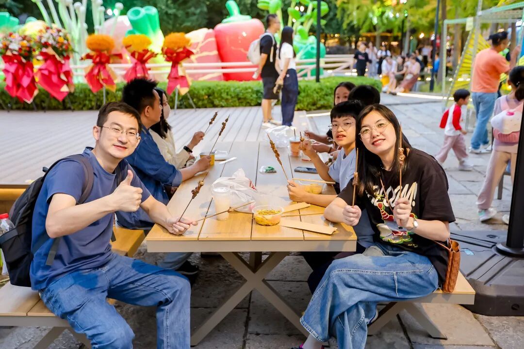除了舌尖上的满足,美食荟的“沉浸式氛围”更是让人舍不得走。前门大街沿线布置了40余处大型文化艺术装置。融合汉字艺术的合体字盘前,游客纷纷驻足拍照;火锅食材淘气堡成了亲子家庭的乐园;苏式点心花园还原江南雅致,随手一拍都是国风大片。11处“来前门坐坐”互动艺术座椅,既能歇脚又能打卡,50余处地贴、墙贴指引和10余处主出入口导视牌,让逛吃路线清晰不迷路。