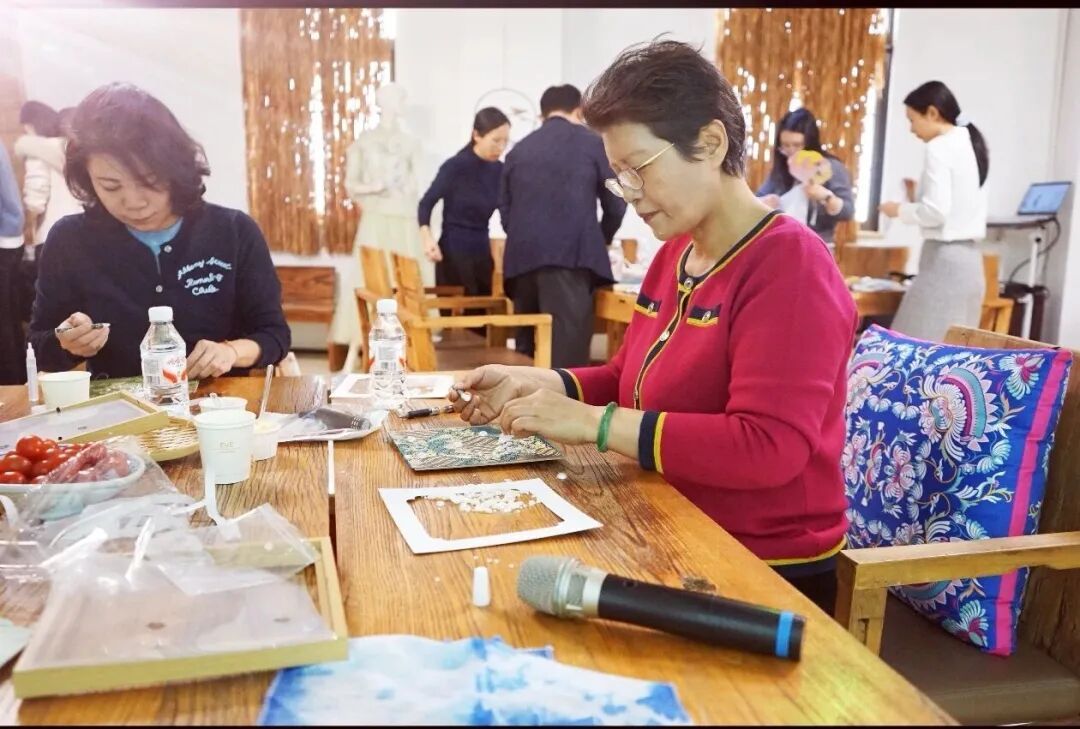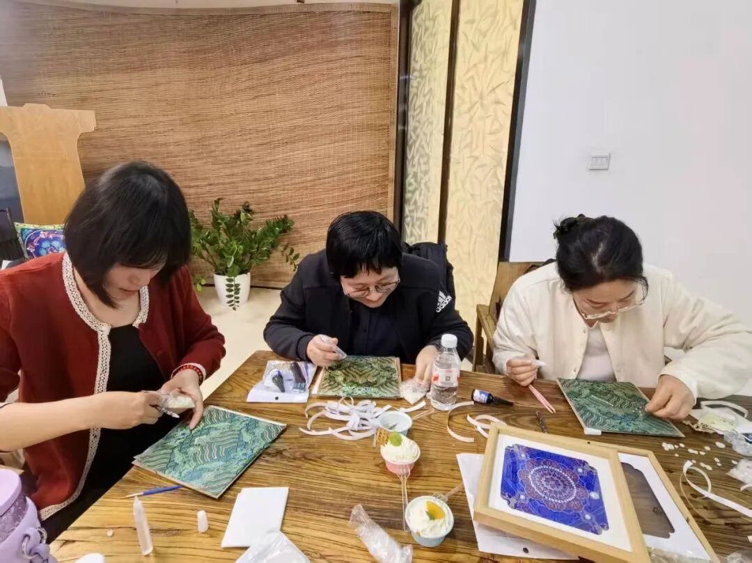 活动中,女职工们先后参观文化展区、参与漆扇、扎染、宋锦珍珠画、螺钿胸针四项非遗手作体验,在专业老师的指导下,沉浸式感受中华优秀传统文化的博大精深和匠心魅力。大家凝神聚力、精心创作,在动手实践中舒缓工作压力、增进同事情谊,在文化体验中厚植家国情怀、激发使命担当。