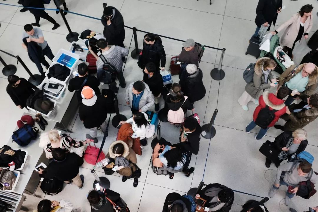 ▲1月9日,乘客在纽约肯尼迪机场排队进行安检。(视觉中国)