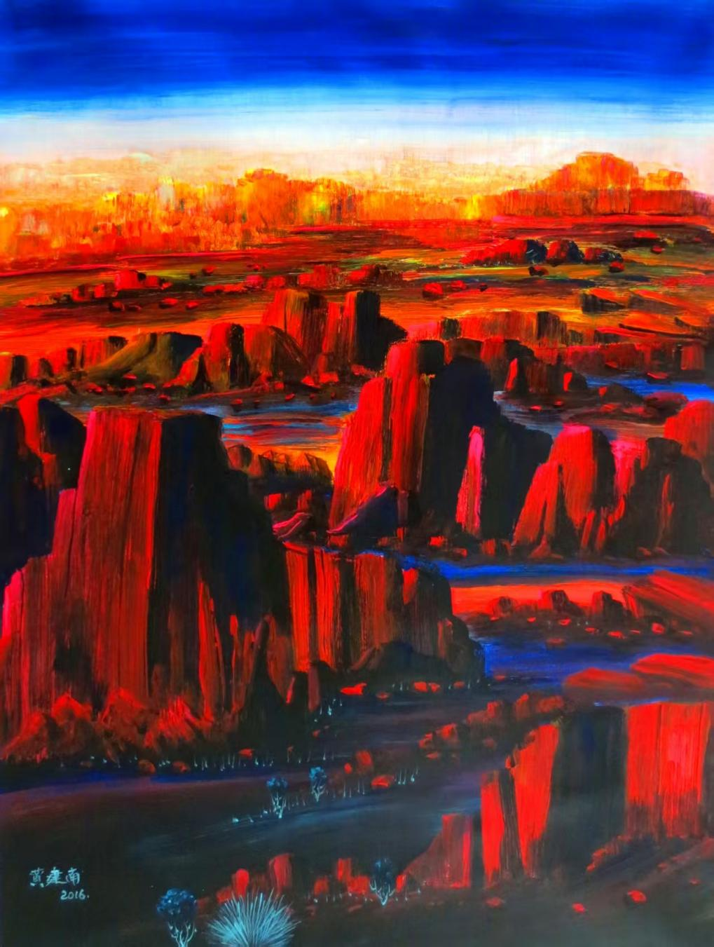 站在2025年岁末,回望黄建南的艺术之路,从河源乡野到国际殿堂,从徒步山河到跨界创新,他始终坚守“用笔墨传承中国文化,用色彩讲好中国故事”的初心。这种坚守,让他的作品既有着“大漠孤烟直”的雄浑,又有着“小桥流水人家”的温婉;既蕴含《周易》“天垂象”的哲思,又兼具现代艺术的先锋性。
