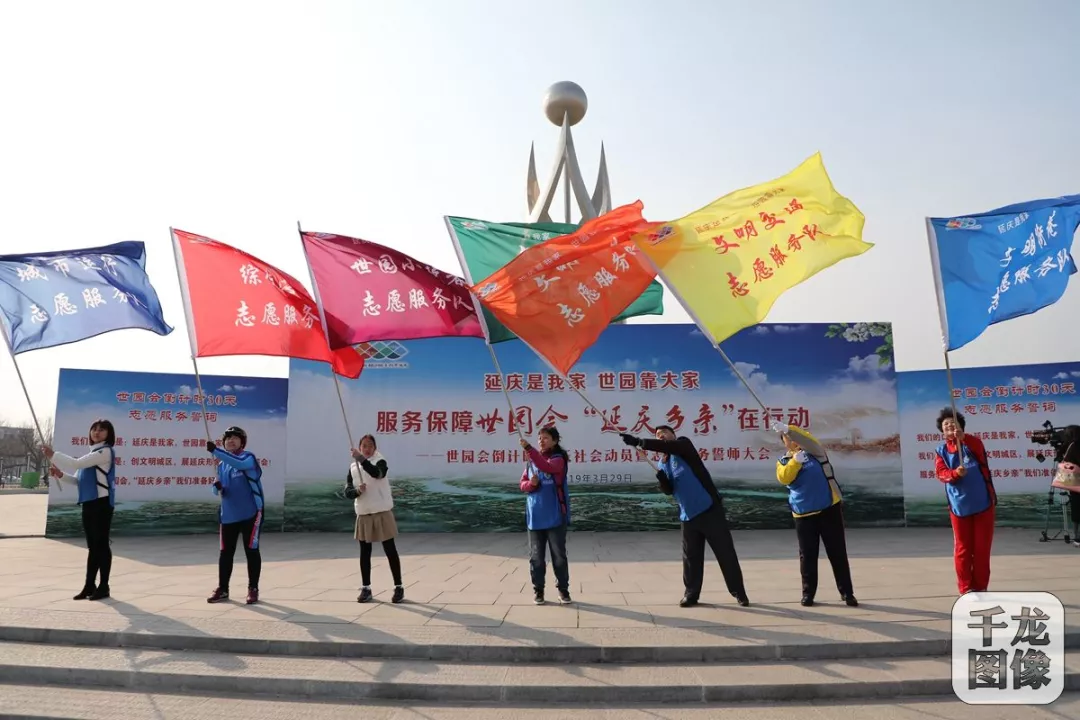 当日距离2019北京世界园艺博览会开幕还有一个月。7面彩旗代表文明街巷、文明交通、文明行为、文明旅游、文明小使者、综合治理以及城市运行7个方面,2万余名“延庆乡亲”将围绕这些志愿服务工作保障世园会。