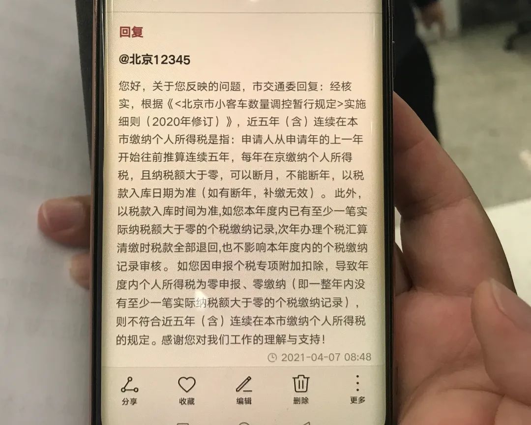 市民庞先生直言,北漂十几年,年年缴税,只是近两年受疫情影响收入不比从前,再加上进行了退税,如今这样一番计算方式相当于直接抹去了大家的缴税记录,小客车指标申请需要从头再来,感觉不合理。