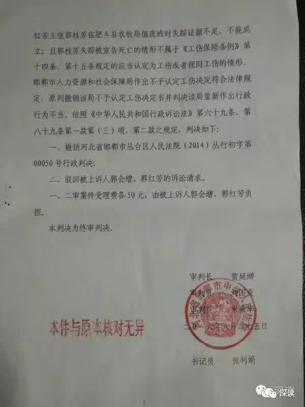 2016年8月,邯郸市中级人民法院就此案作出二审判决。