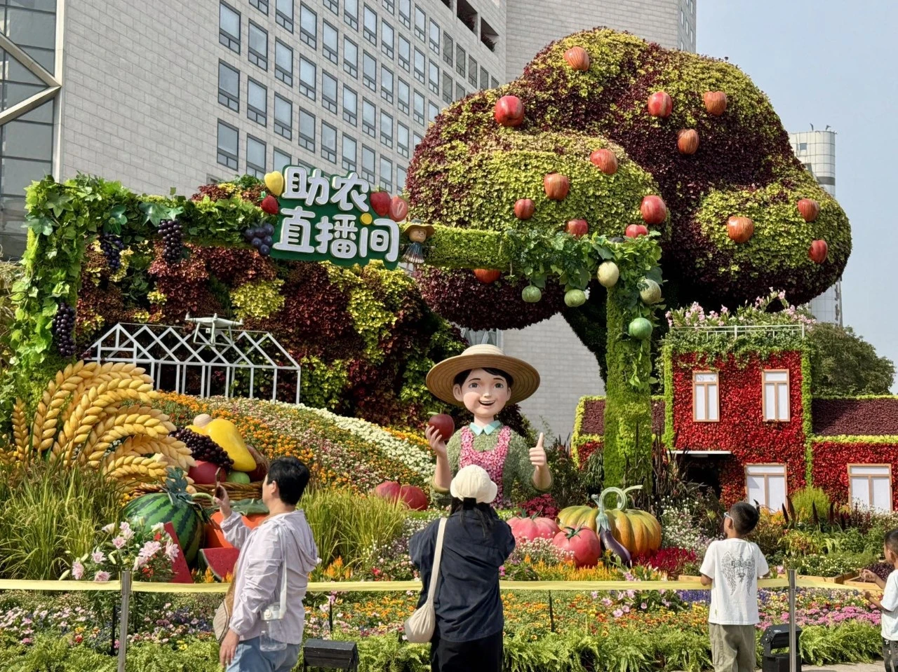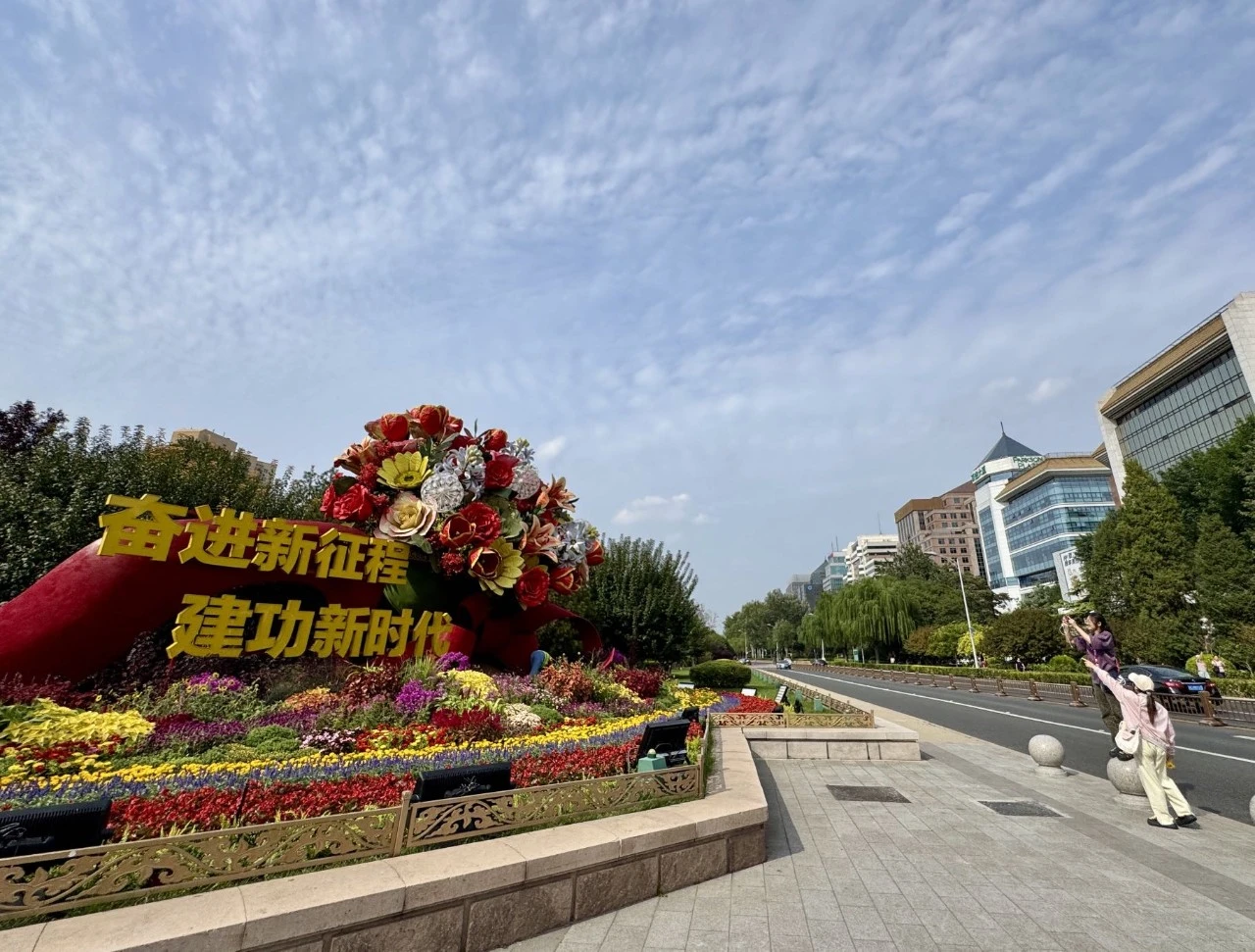 长安街沿线从建国门到复兴门之间的10组立体花坛,描绘出“祖国繁荣昌盛、人民安居乐业”的中国式现代化新篇章。