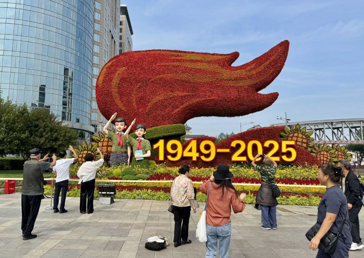 9月21日上午,为庆祝新中国成立76周年,长安街沿线的国庆花坛景观布置已全部完成。长安街上的10组立体花坛延续中国人民抗日战争暨世界反法西斯战争胜利80周年纪念活动布置形式,进行了元素更换和植物调整,以确保呈现最佳的景观效果。