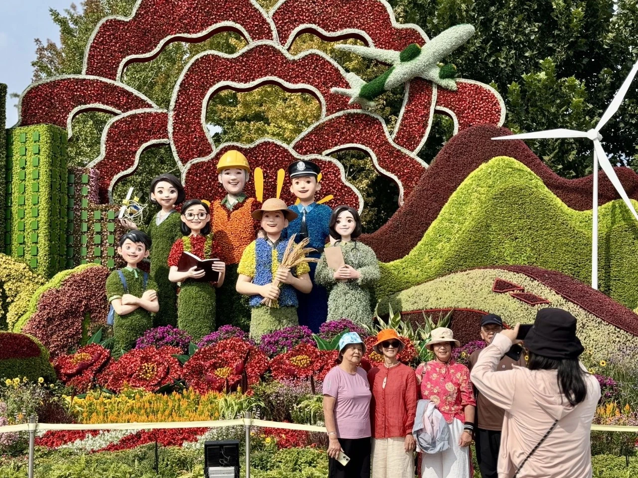 “一路上10个花坛我们都看了,每个花坛都很有特色、很有意义,特别有节日的气氛。”