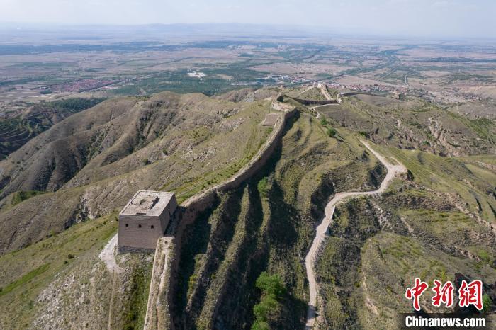 山西省朔州市山阴县,无人机航拍广武明长城,犹如巨龙在崇山峻岭间蜿蜒盘旋。(资料图片)