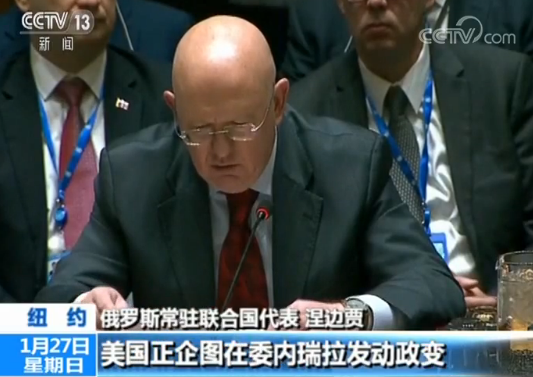 26号,联合国安理会召开会议,讨论目前的委内瑞拉局势。在当天的会议上,俄罗斯常驻联合国代表涅边贾指出,委内瑞拉国内局势并没有对国际社会的和平与安全造成威胁,而美国却企图在委内瑞拉发动政变,这是公然破坏国际法的行为。