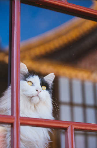 眺望着不远处的宫殿的故宫猫鳌拜,鳌拜是因为他酷似影视剧中鳌中堂的形象而得名。