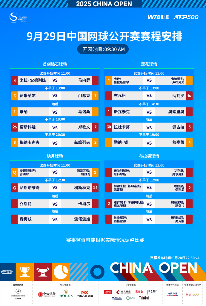 2025中网9月29日赛程更新!Queen Wen第三轮比赛时间确定,郑钦文迎战诺斯科娃,这将是郑钦文在2025中网的第二场比赛。